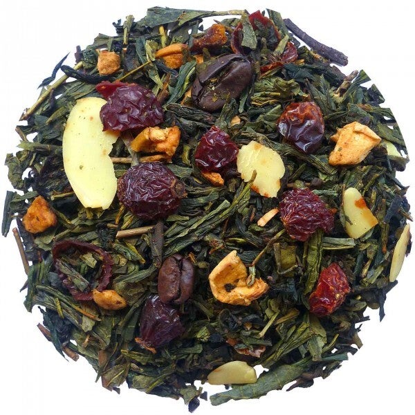 Ingrediënten: Groene thee, rozenbottel, koffiebonen, amandelen, appel, aroma