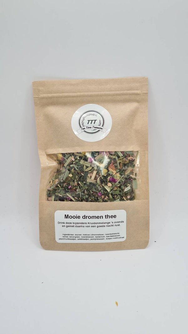 Ingrediënten: druiven, melisse (citronmelisse), rozenbottelschil, venkel, lemongrass, rozenbloesem, kardemom, kamillebloesem, pepermuntblaadjes, salieblaadjes, jasmijnbloesem, stukjes nootmuskaat.