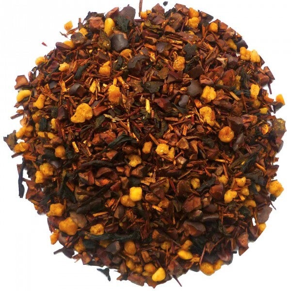 Ingrediënten: cacaobonen, noot-krokant strooisel (suiker, hazelnoot, caramelsuiker siroop), rooibos, Zwarte Thee, aroma