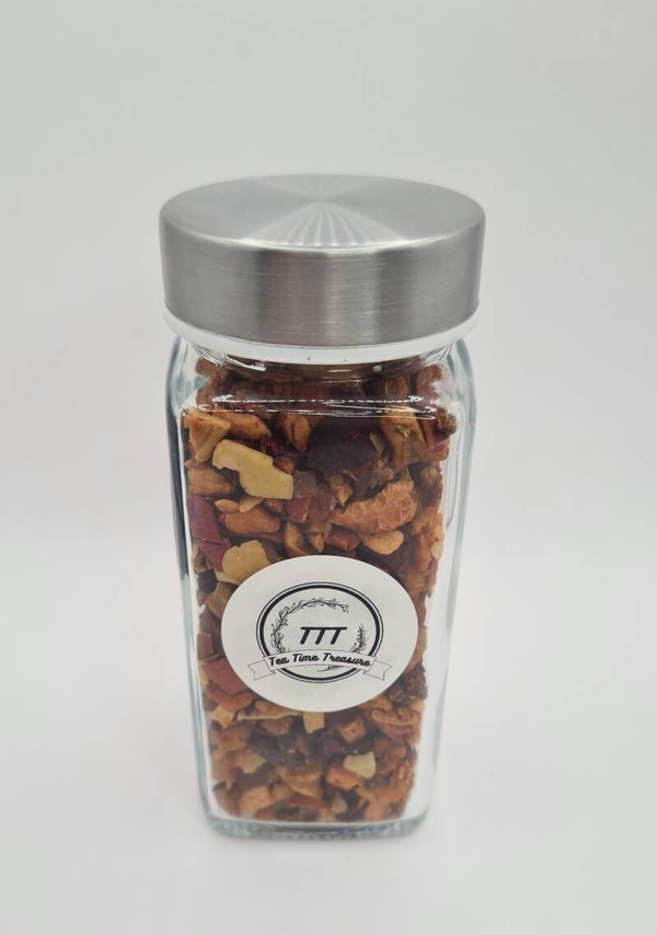 Ingrediënten: stukjes appel, kaneel, natuurlijk aroma, amandel, rode bessen, nootkrokant strooisel