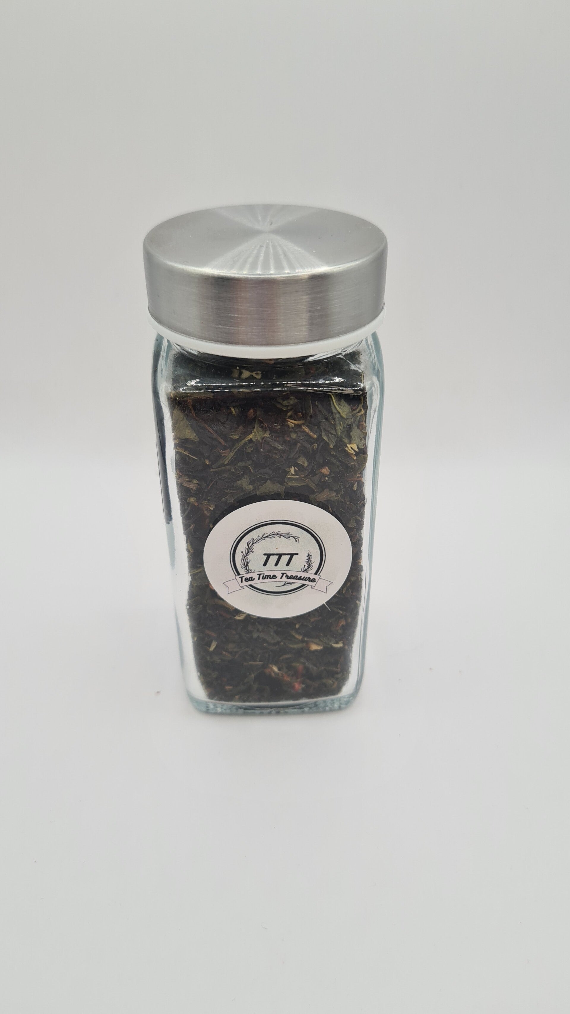 Ingrediënten: Zwarte Thee, Groene Thee, aroma, aardbeien, citrusschil, zonnenbloembloesem.