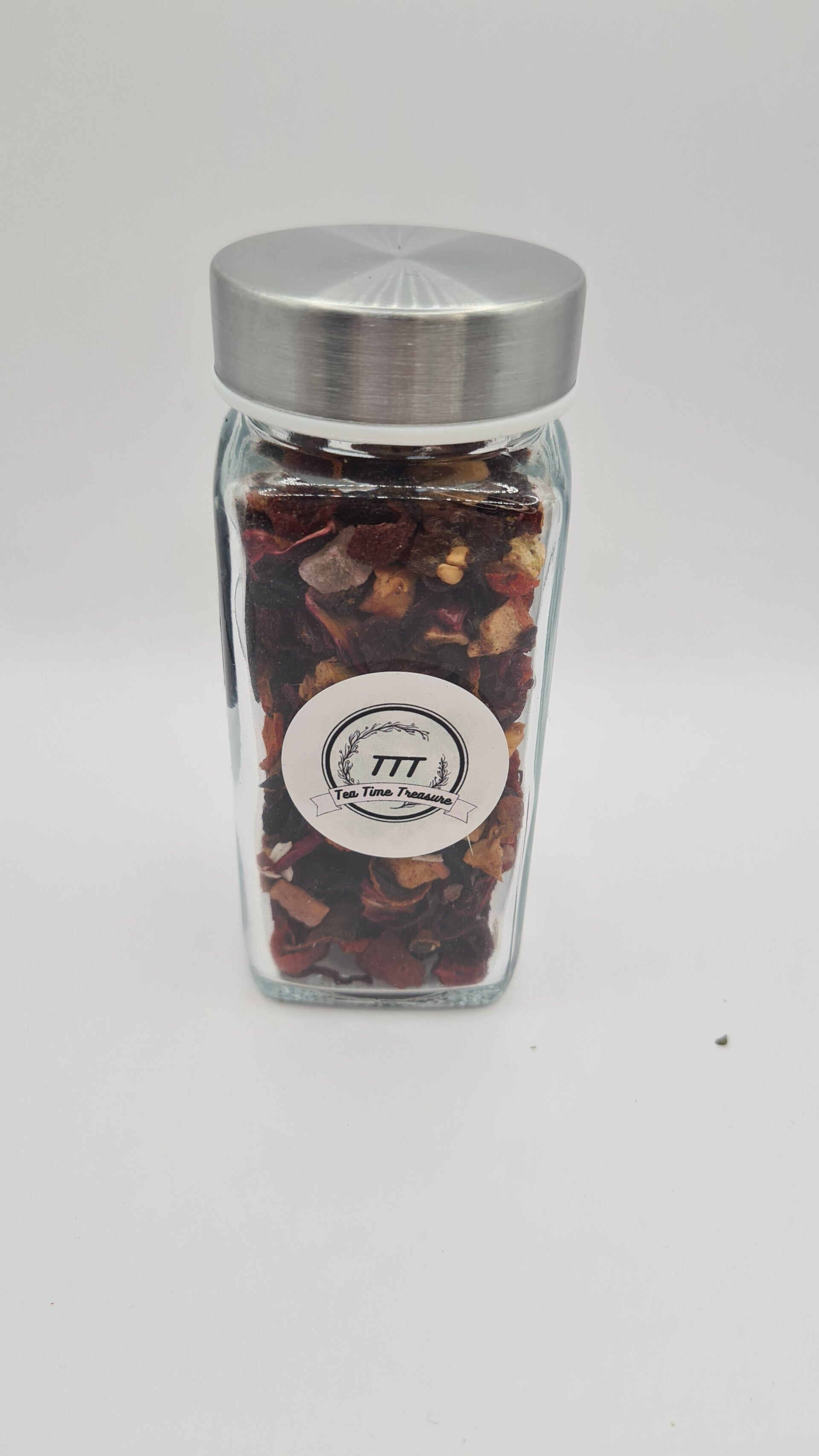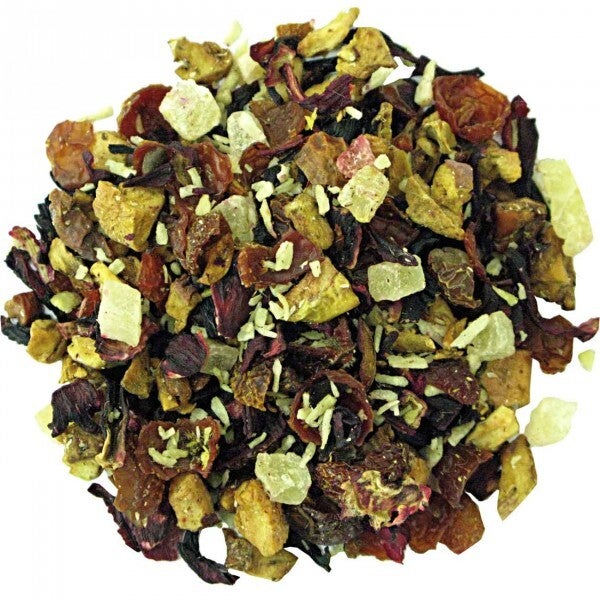 Ingrediënten: hibiscusbloesem, appel, rozenbottel, ananas (ananas, suiker, citroenzuur), kokosvlokken, aroma